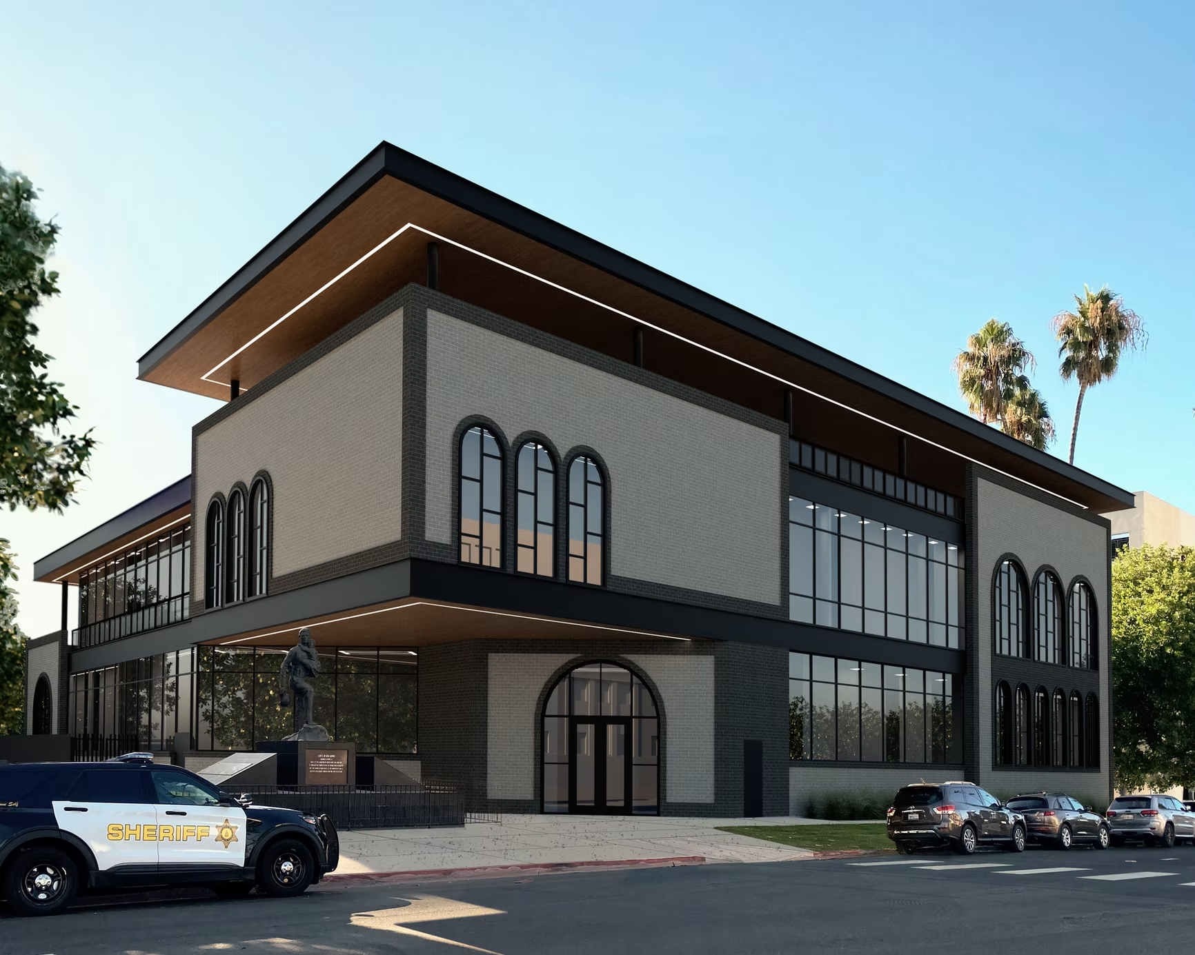 The new Riverside Police Headquarters is a 37,838‑square‑foot, two‑story public safety facility that will replace the city’s outdated 1965 headquarters at 4102 Orange Street in downtown Riverside. Designed by Holt Architects, the building will consolidate administrative, training, records, and community services into a modern, seismically compliant structure built to support police operations.